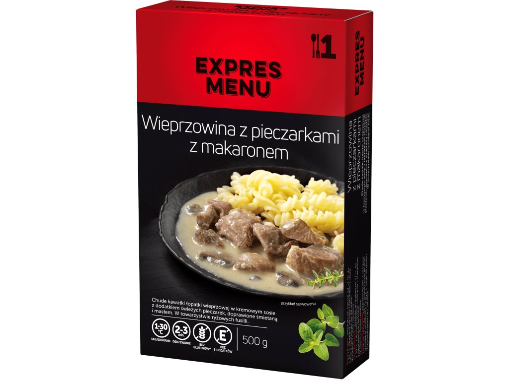 Wieprzowina z pieczarkami z makaronem 1 PORCJA